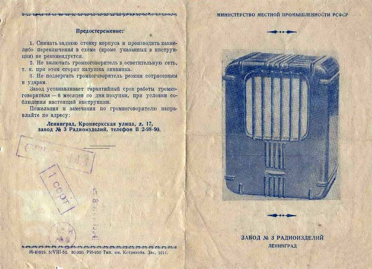 выпускался с 1952 года Ленинградским заводом радиоизделий № 3. Модель выпускалась
