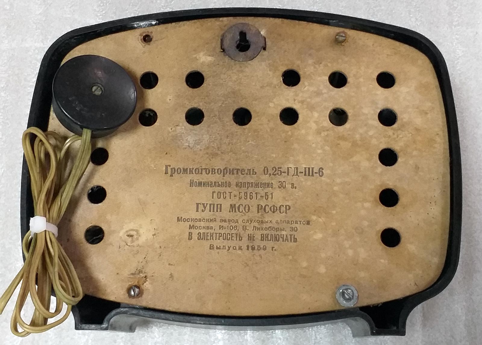 Стандартный абонентский громкоговоритель для проводной 30 вольтовой радиосети.
