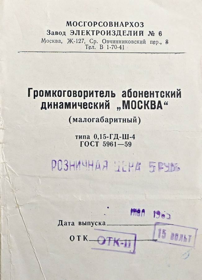 громкоговоритель "Москва" выпускал с 1966 года Московский завод электроаппаратуры.