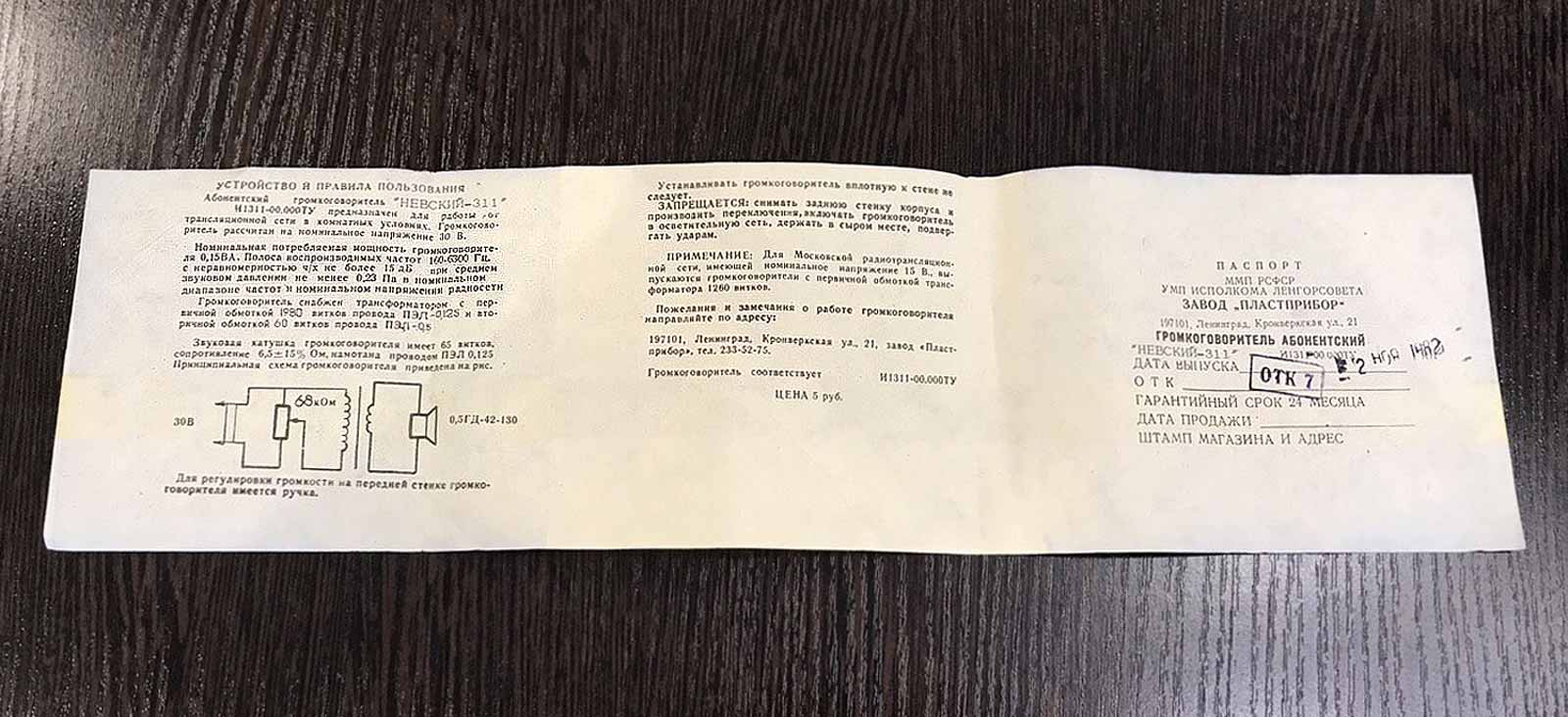 завод "Пластприбор". С 1988 года абонентский громкоговоритель