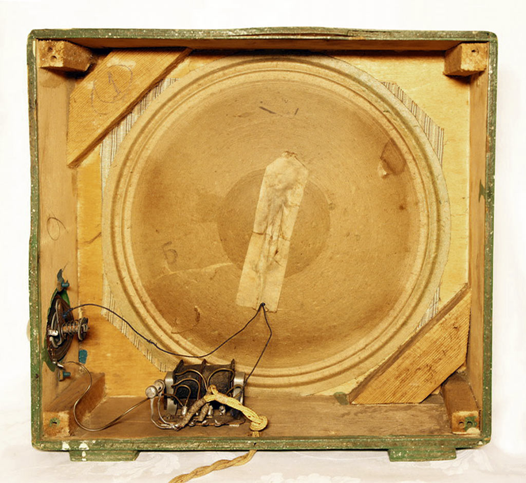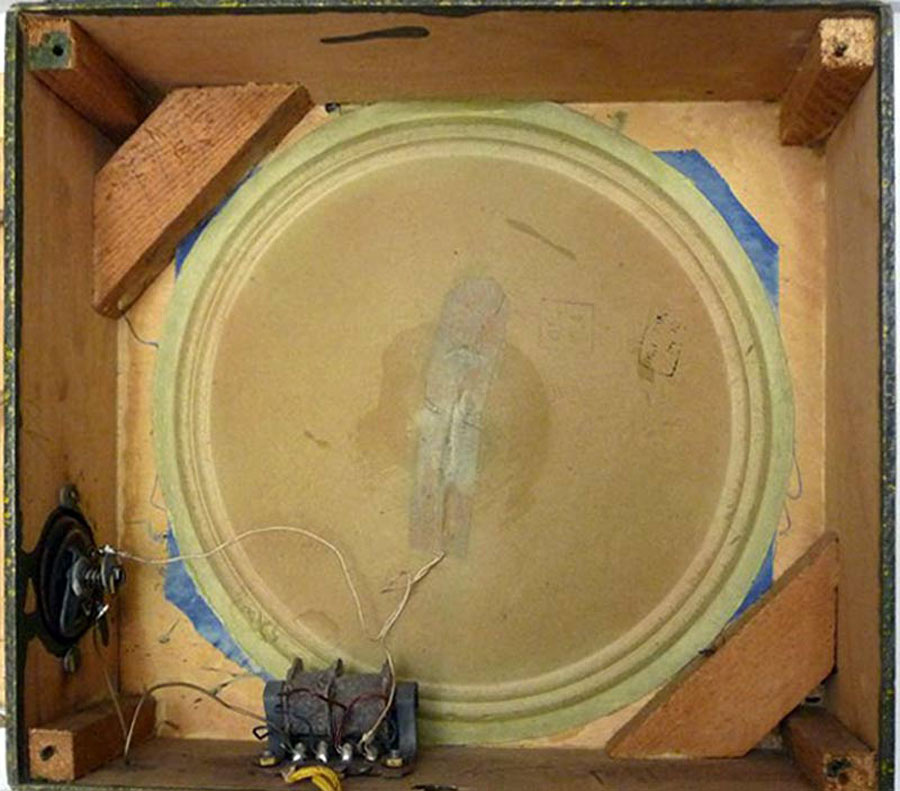 на заднюю стенку футляра. Возможно одна из разновидностей громкоговорителя,