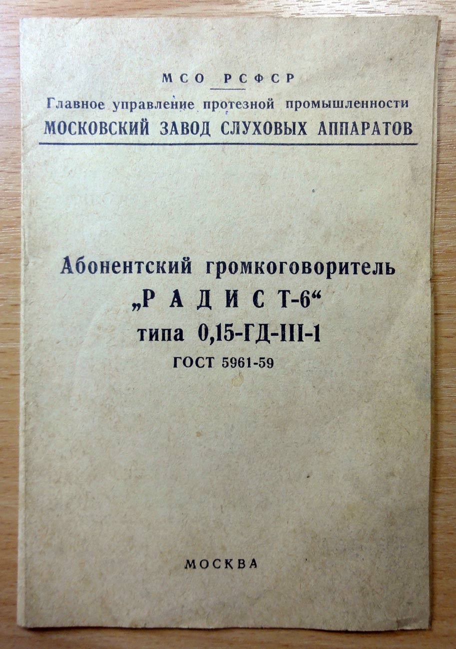 громкоговоритель "Радист-6" (0,15-ГД-III-1) с 1959 года выпускал Московский