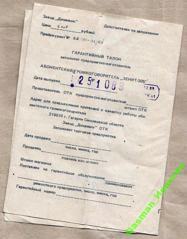 громкоговоритель "Зенит-305" с 1987 года выпускал Гагаринский АООТ Динамик.