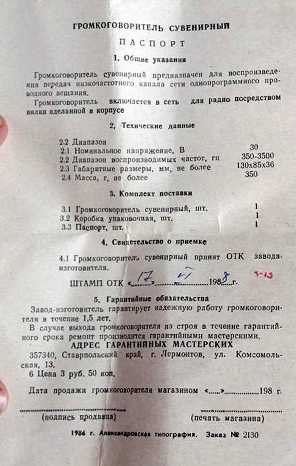 Сувенирный абонентский громкоговоритель "Бештау" с 1986 года выпускал Лермонтовский завод «Микроом», Ставропольский край. АГ предназначен для работы в местной 30-ти вольтовой проводной радиосети.