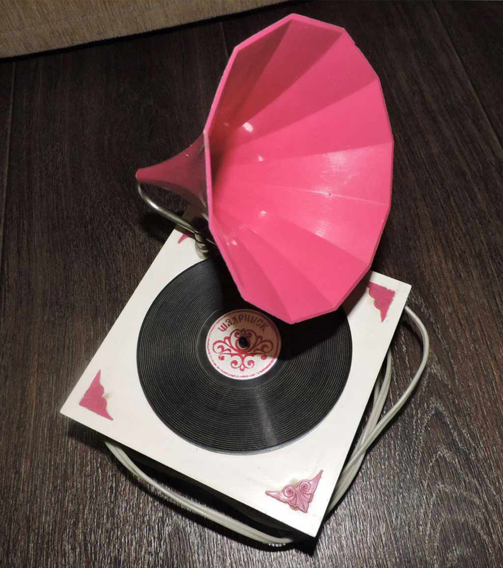 Сувенирный абонентский громкоговоритель "Граммофон" выпускался возможно с 1985 года Шадринским телефонным заводом (Курганская область). Чисто сувенирный, так как качество звучание очень низкое.