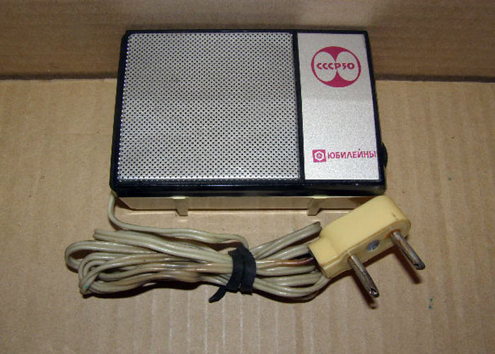 Абонентский громкоговоритель ''50 лет СССР'' выпускался с 1971 года во Львове. Для радиосети с напряжением 30 В. Диапазон воспроизводимых частот звука 250...5000 Гц. Габариты АГ 120х65х50 мм. Вес 400 г.
