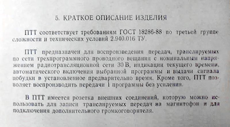 трансляционной сети, с напряжением 30 вольт. Имеется таймер. Диапазон воспроизводимых