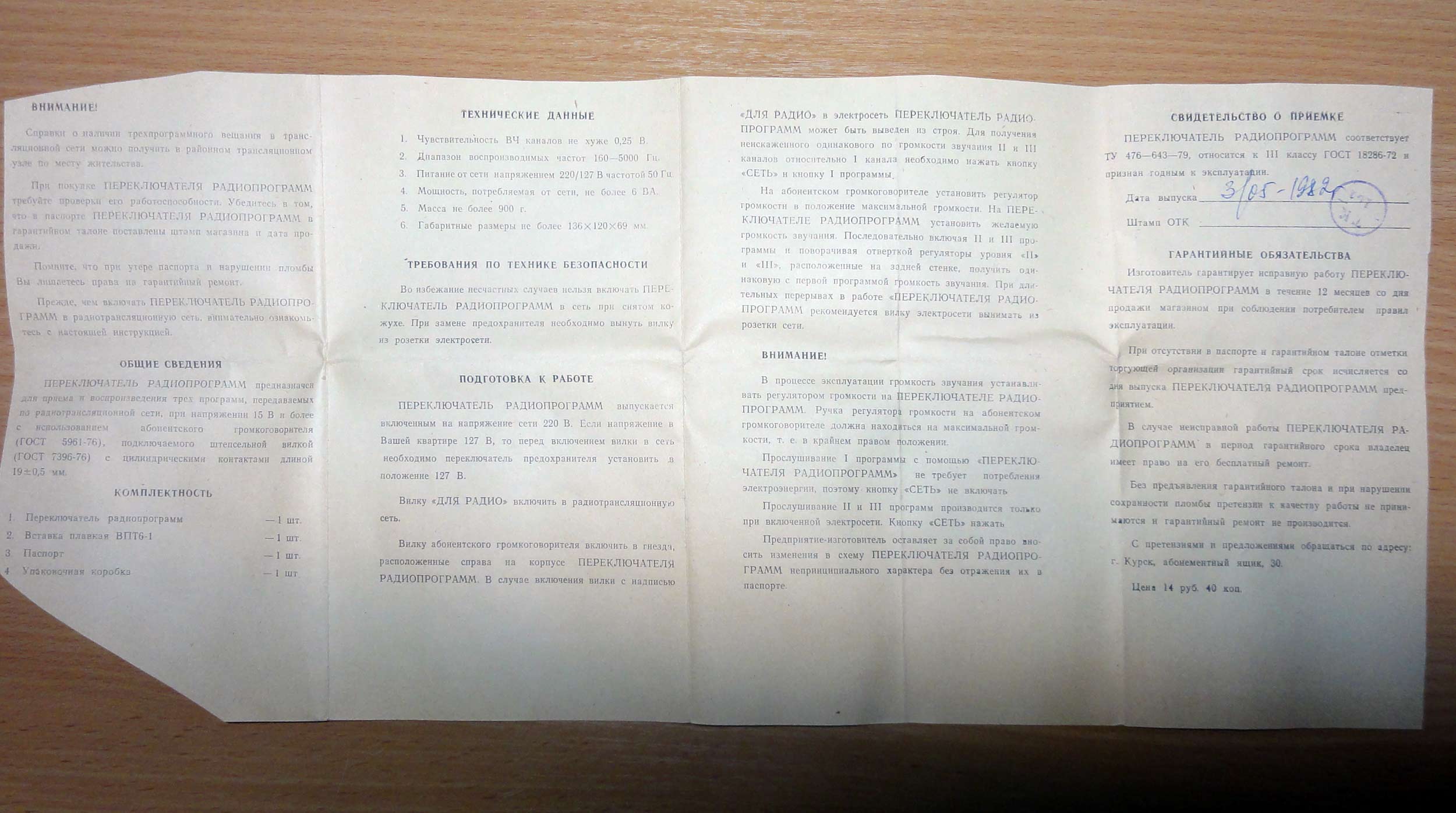 "Переключатель радиопрограмм" с 1982 года выпускалась Курским завод "Маяк".