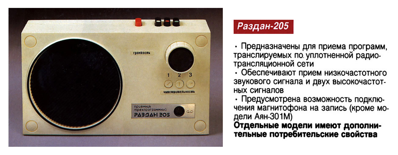 приёмник проводного вещания ''Раздан-205'' создан на базе серийного трёхпрограммного