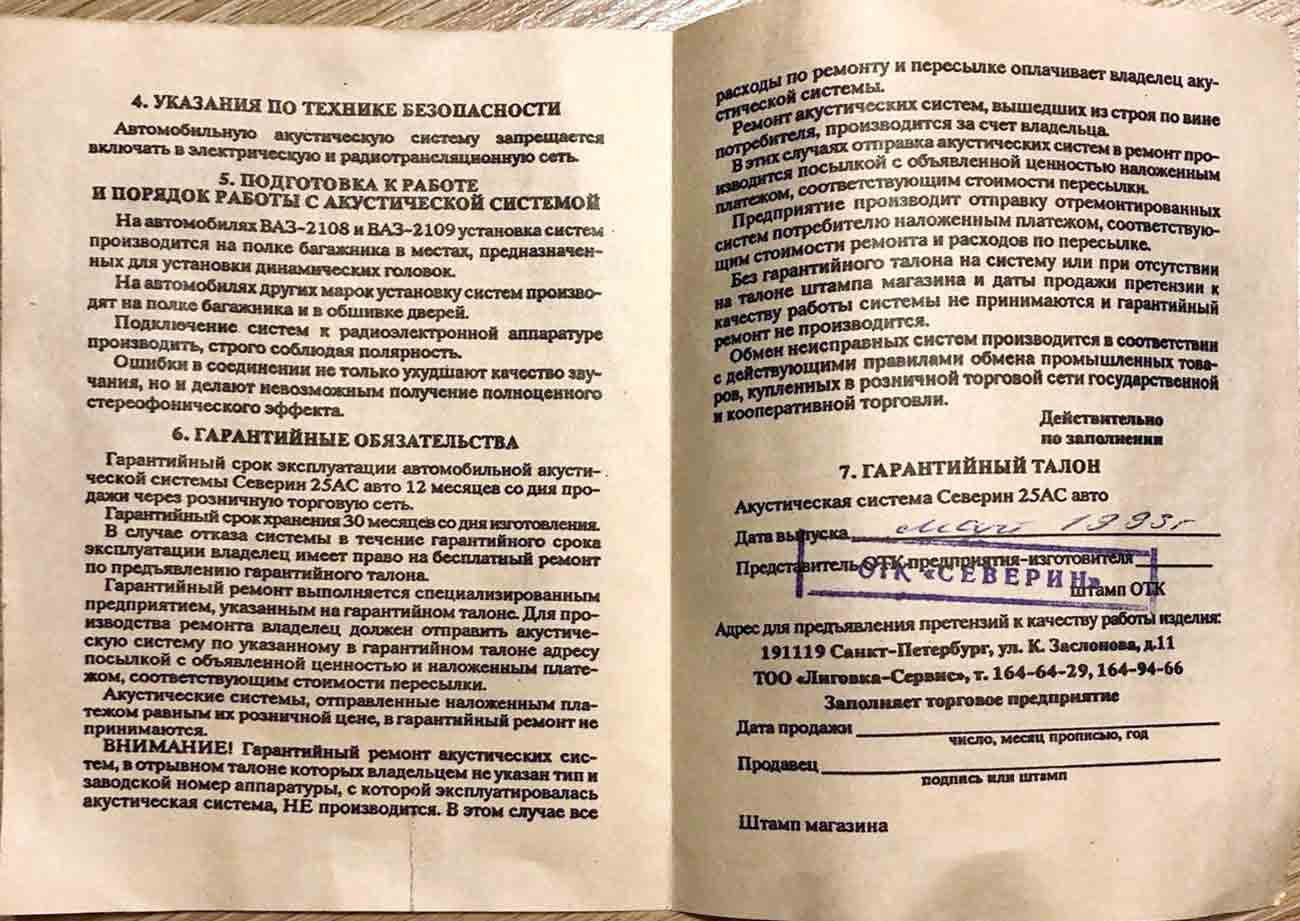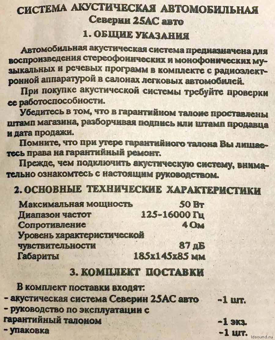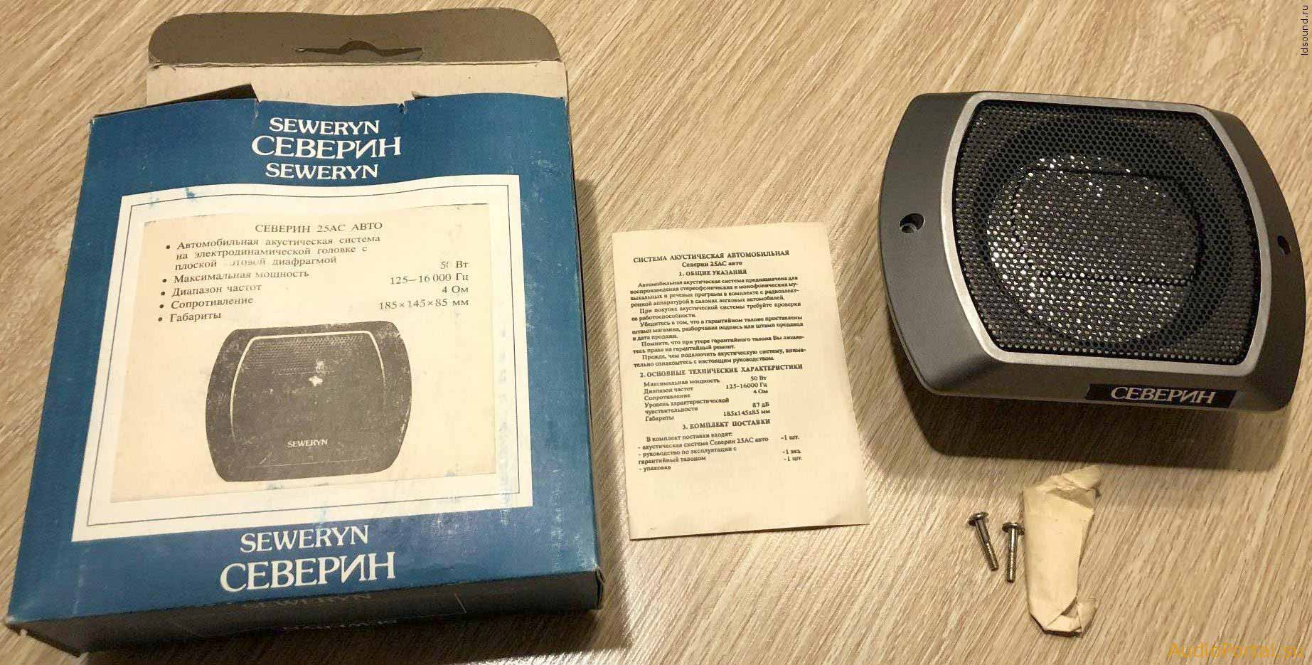 Автомобильная АС "Северин 25АС авто" выпускалась возможно с 1992 года ТОО "Лиговка-Сервис". Служит для воспроизведения фонограмм в салонах легковых автомобилей.