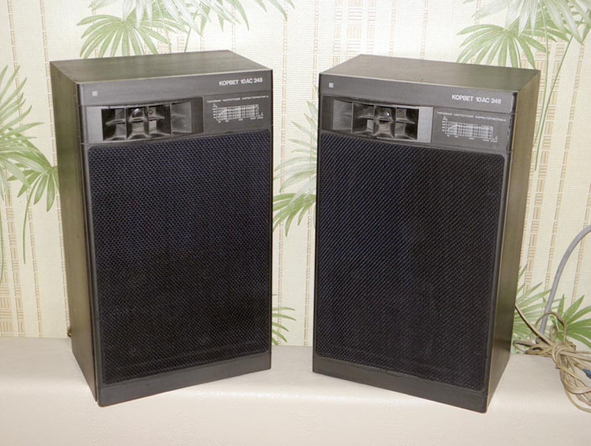 АС шла в комплекте с электрофоном "Корвет-248-стерео". Первые АС имели