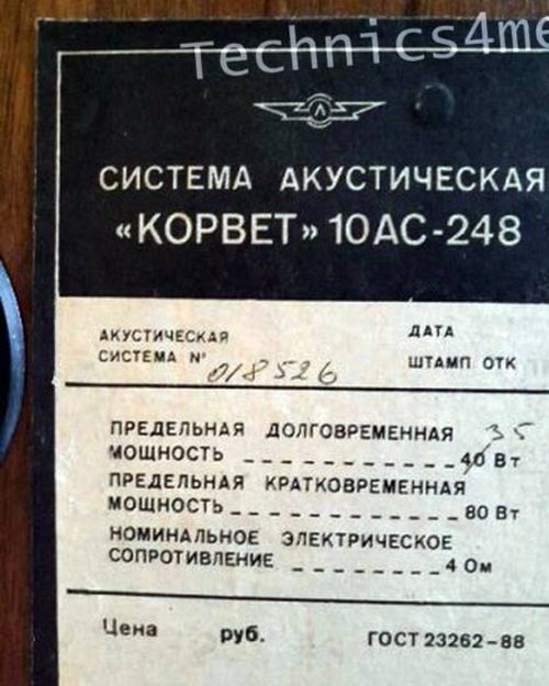 выпускал аналогичную АС с наименованием "35АС-248" (Корвет).