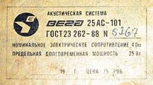 "Вега". АС предназначены для высококачественного воспроизведения речевых
