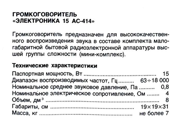 АС "Электроника 15АС-414" из каталога "Электроника" за 1981 год.
