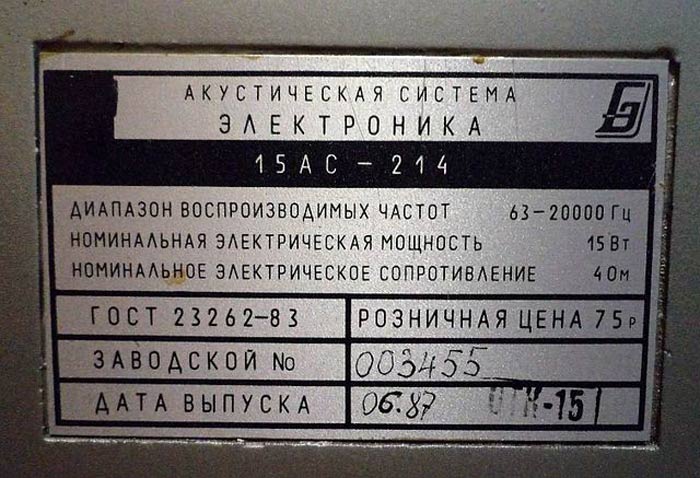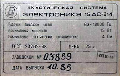 заводом "Эрстед" выпускалась АС "Электроника 15АС-214". Двухполосная, закрытая