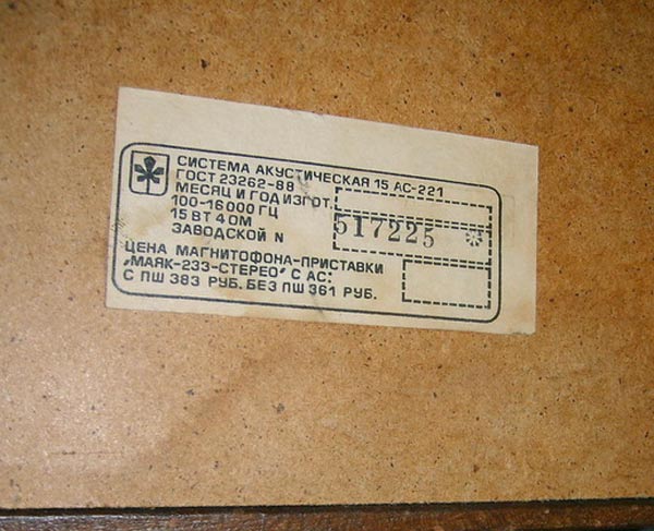 система "15АС-221" выпускалась с 1987 года Киевским заводом "Маяк". АС выпускалась под новым наименованием по новому