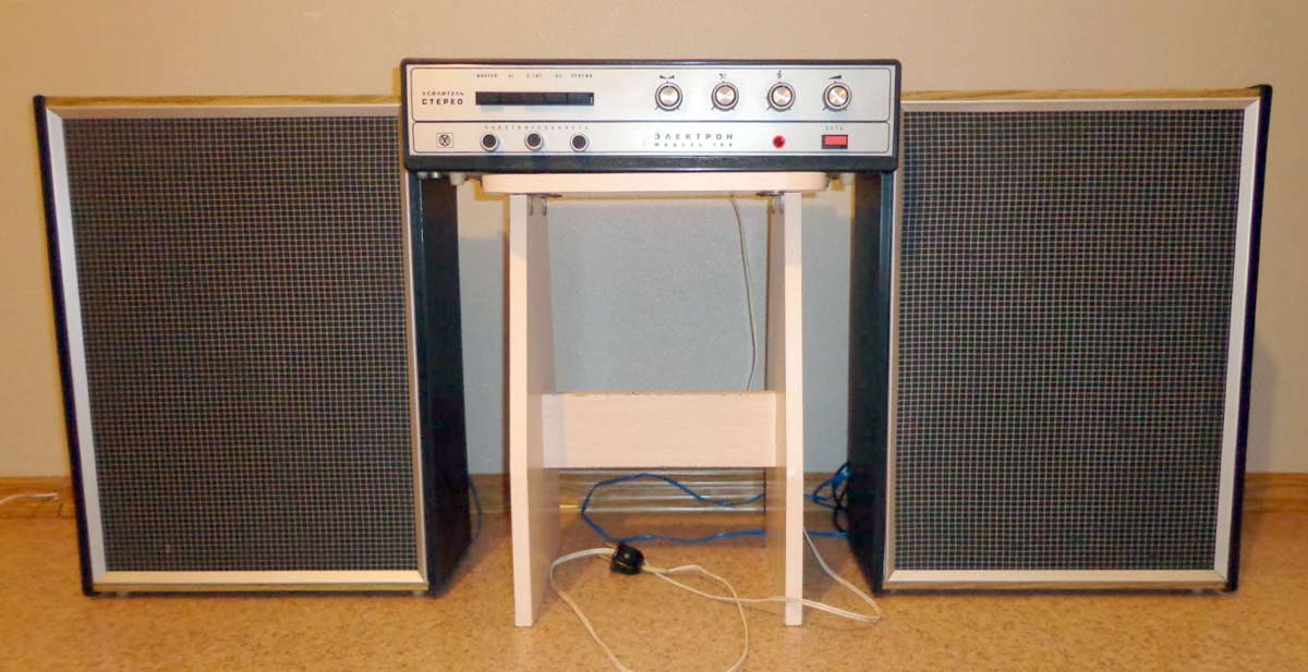 АС входила в комплект УЗЧ - "Электрон-104-стерео" и "Электрон-104-2-стерео".