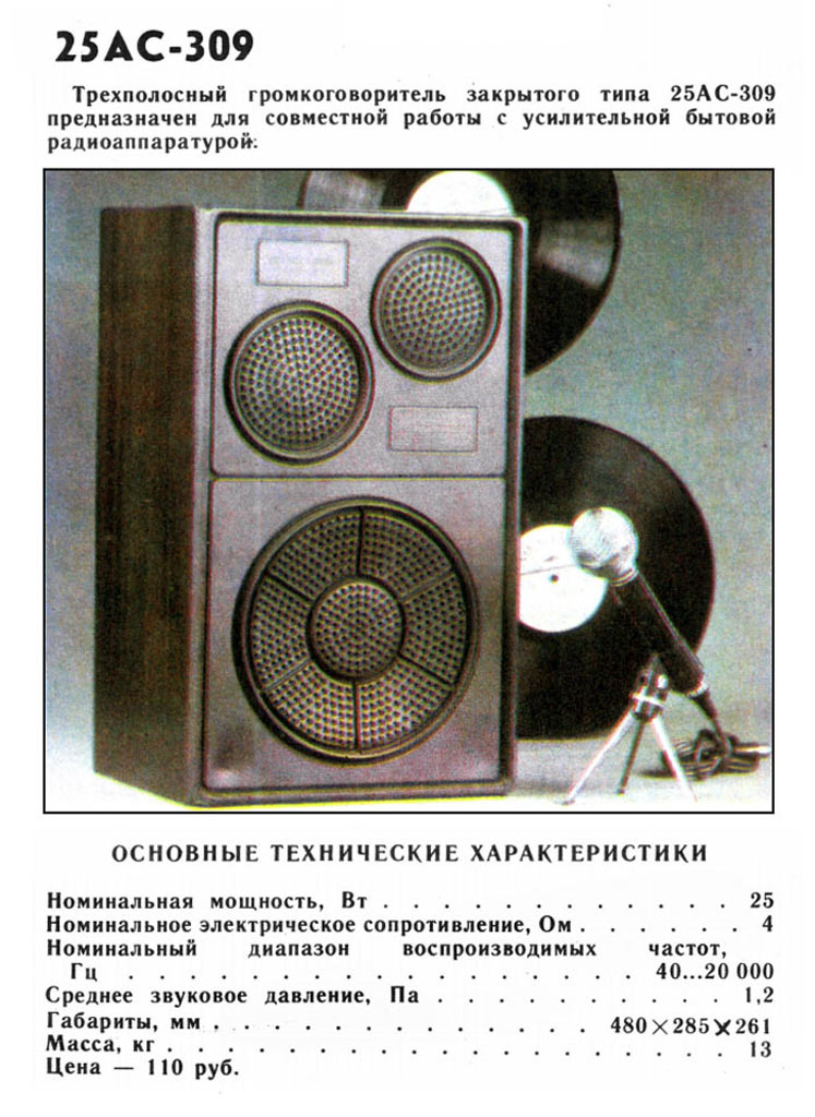 - 480х285х261 мм. Масса - 13 кг. Цена одной АС 110 рублей. С осени 1984