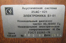 3, Свыше 2000 - 3. Габариты: 630х340х250 мм. Вес: 21 кг. Цена 135 рублей. С 1979 года завод выпускал аналогичную АС с наименованием "25АС-421".