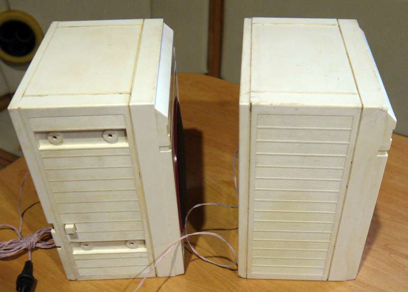 в пластмассовом корпусе в общем дизайне с магнитолой и могли отсоединяться