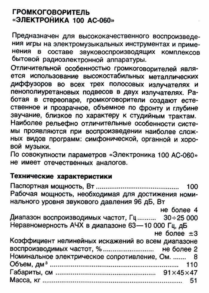 100АС-060" с 1986 года выпускалась Московским НПО "Торий". АС предназначена