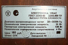 заводом "Элия". АС ''Электроника 130АС'' (35АС-029), по внешнему оформлению