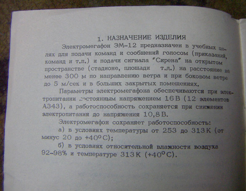 "ЭМ-12" выпускался с 1990 года. ЭМ предназначен для усиления речи на расстояние