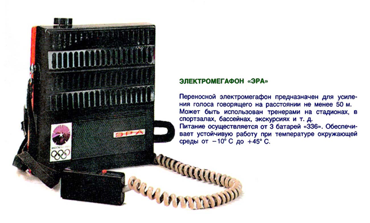 Портативный электромегафон "Эра" выпускался предположительно с 1979 года возможно Ивано-Франковским заводом "Промприбор". Какой либо информации о технических параметрах электромегафона нет.