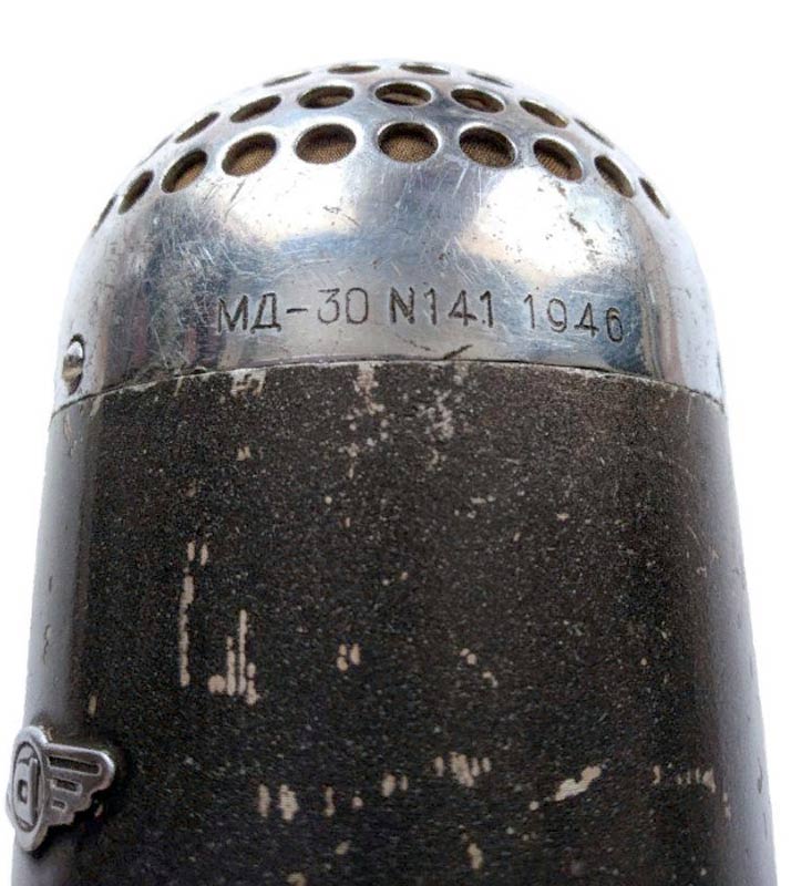 Динамический микрофон "МД-30" выпускался с 1946 года Ленинградским заводом "Радист". Предназначен для передач речи и музыки из студий или же вне студий.