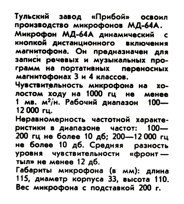 Подробнее о микрофоне "МД-64А" в журнале Радио