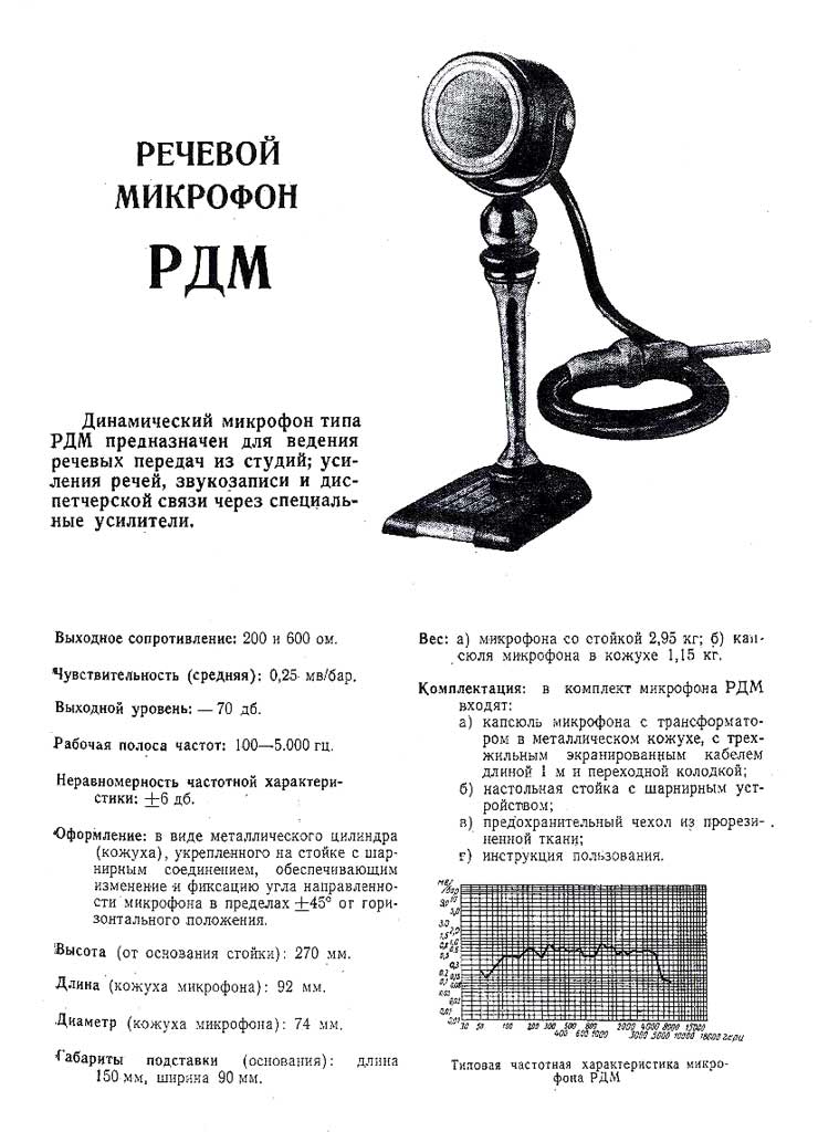 заводом "Октава". Динамический микрофон типа "РДМ" предназначен для ведения