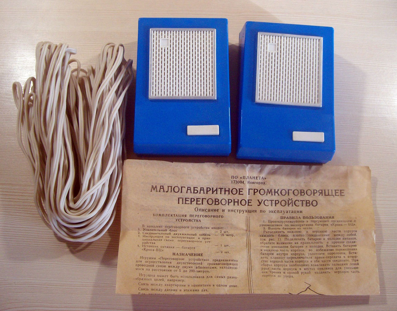 до 200 м. Комплект состоит из двух переговорных устройств, в одном