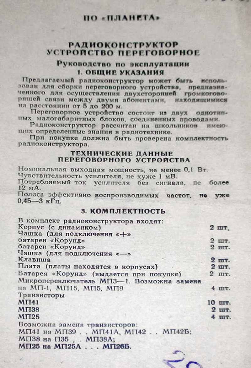 из которых смонтирован усилитель ЗЧ на транзисторах. В другом переговорном