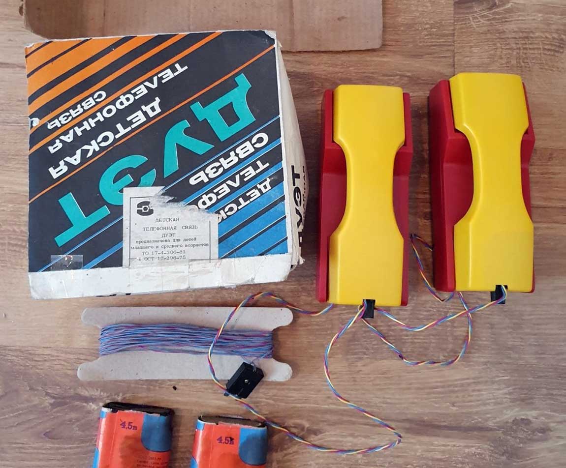 Детская телефонная связь "Дуэт" с 1982 года выпускалась Псковским заводом автоматических телефонных станций. Предназначена для детей младшего и среднего возраста.