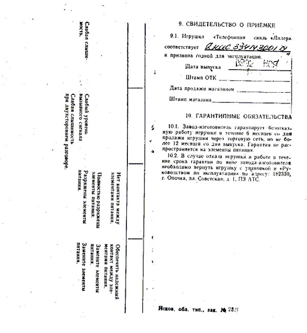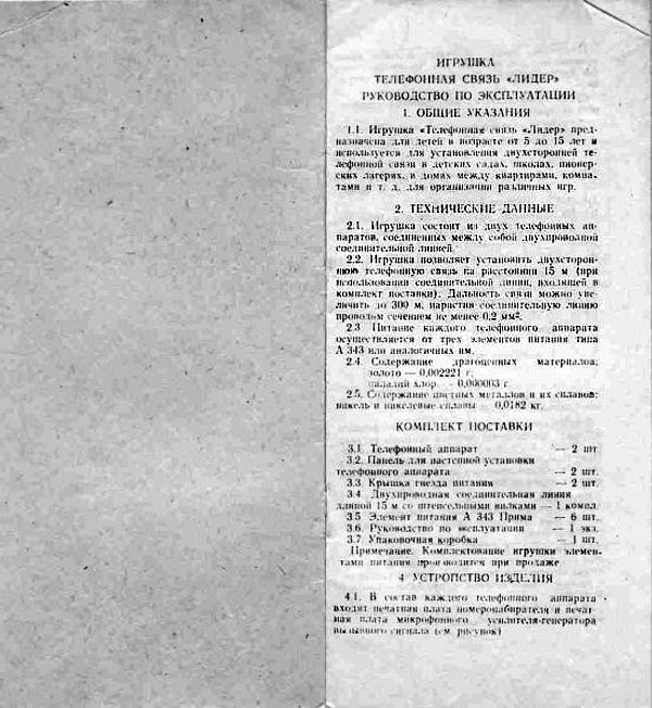 - телефонная связь - "Лидер" выпускалась с 1992 года. Игрушка предназначена
