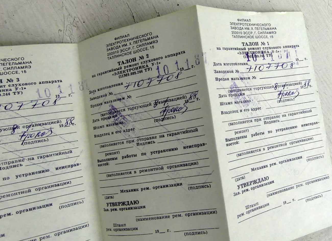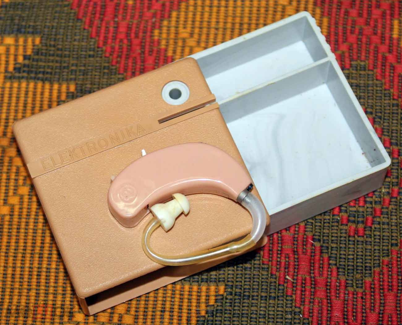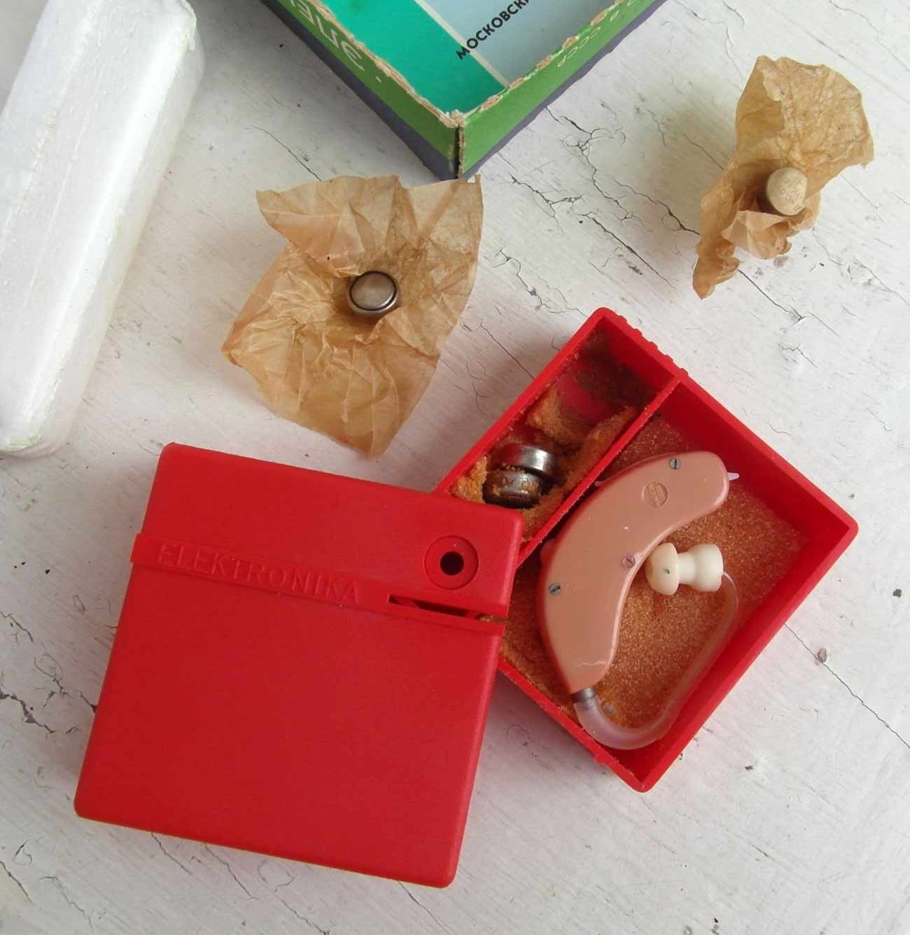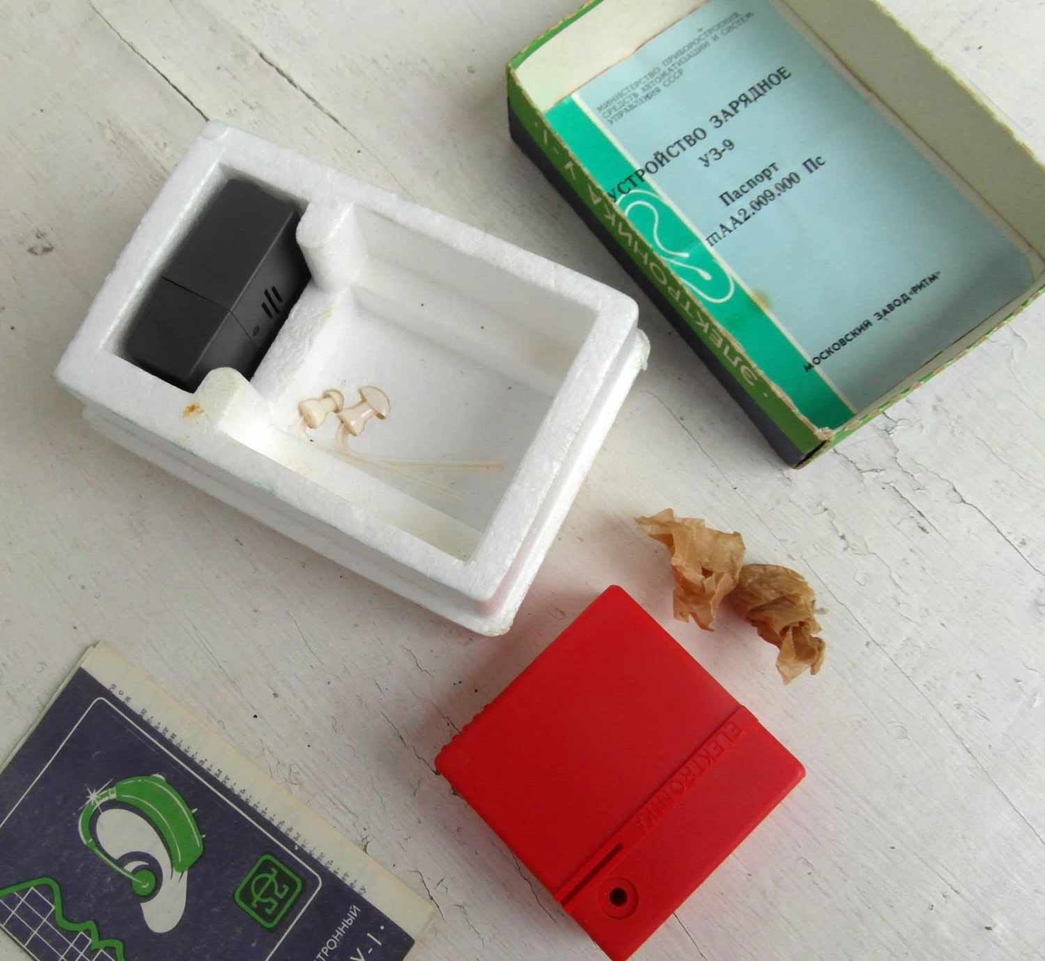 Слуховой электронный аппарат воздушной проводимости "Электроника У-1" выпускался возможно с 1987 года Московским заводом "Ритм" и электротехническим заводом им. Х.Пегельмана, город Таллин, ЭССР.
