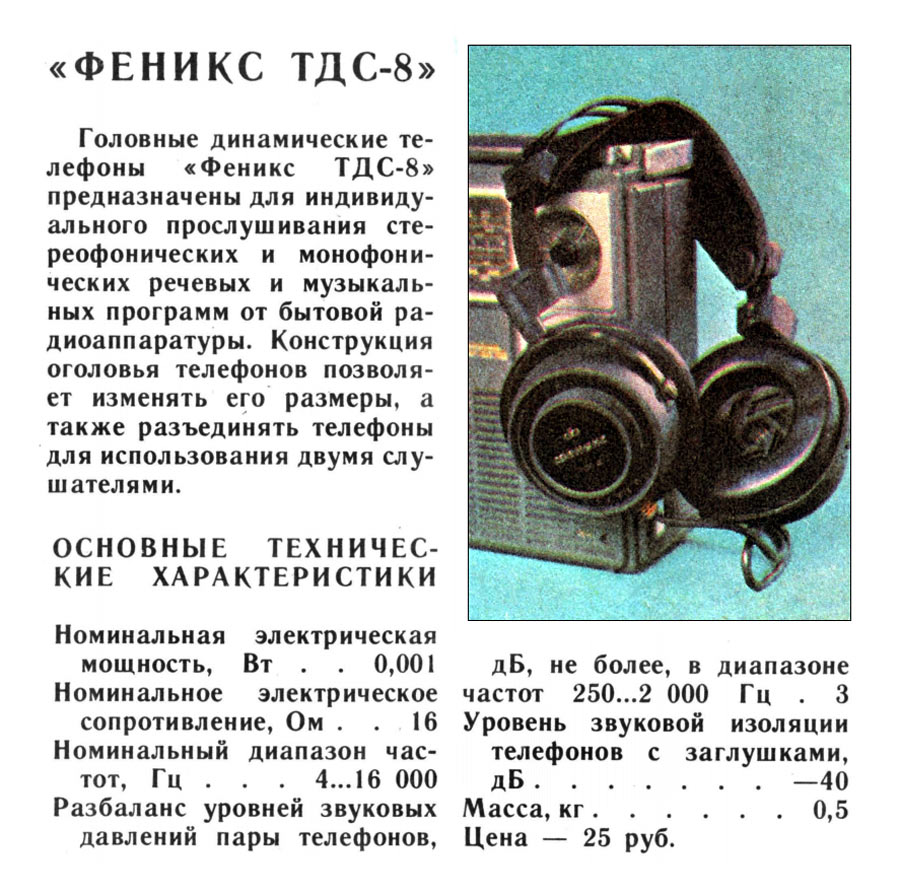 головные динамические стереофонические "Феникс ТДС-8" с 1982 года выпускало