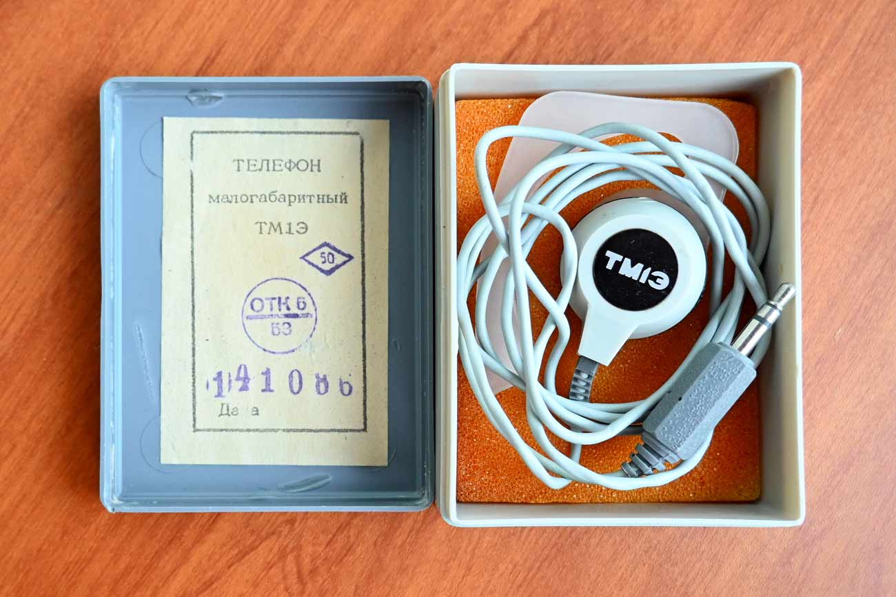 Телефон малогабаритный серьговый "ТМ-1Э" выпускался предположительно с 1985 года Тульским заводом "Октава".