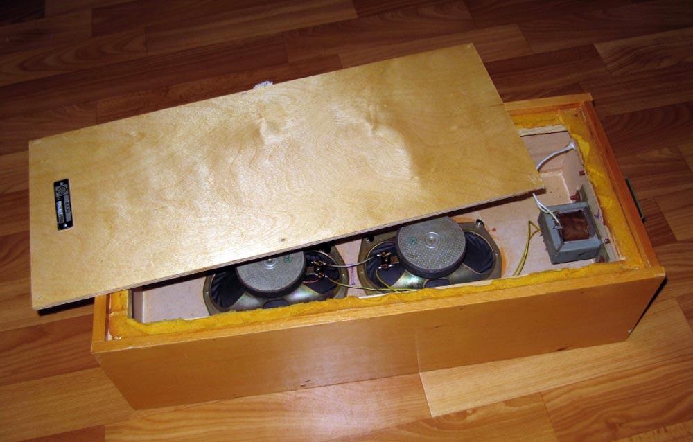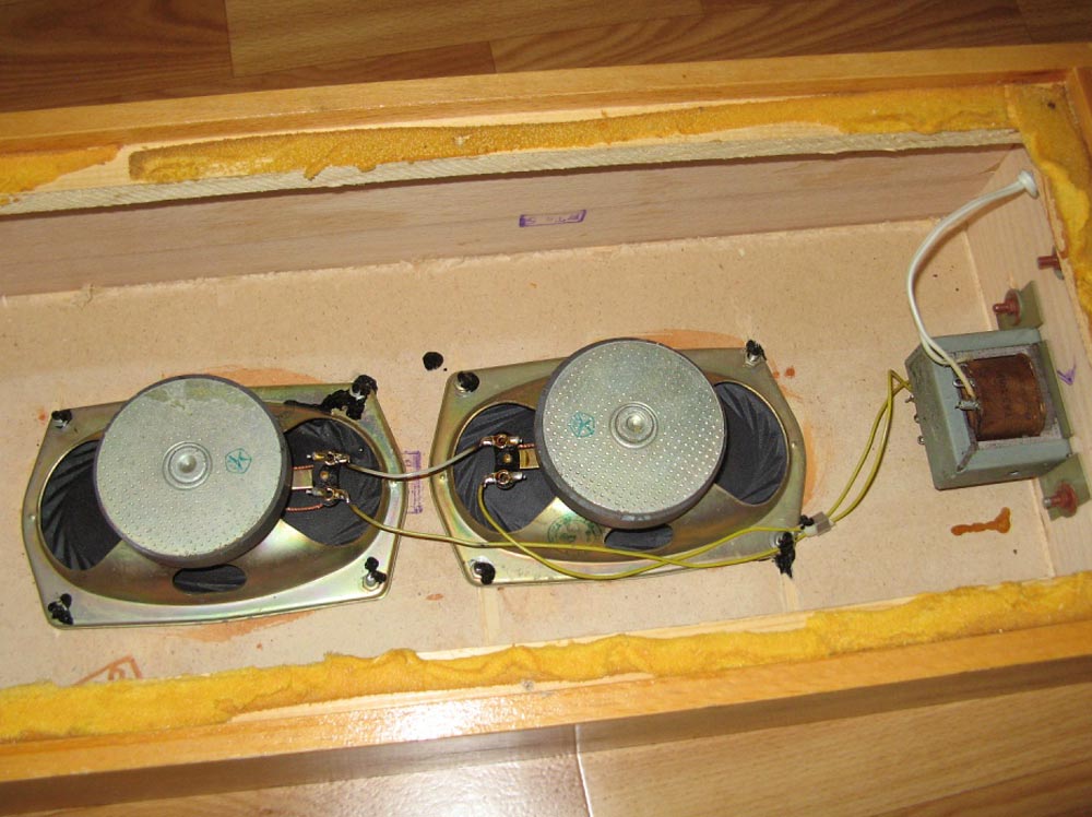две динамические головки 3ГД-42 а также понижающий трансформатор ТВЗ-1-8.