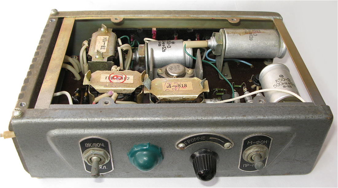 микрофон - МФ-7Б и шесть громкоговорителей 1ГД-18 на отражательных досках.
