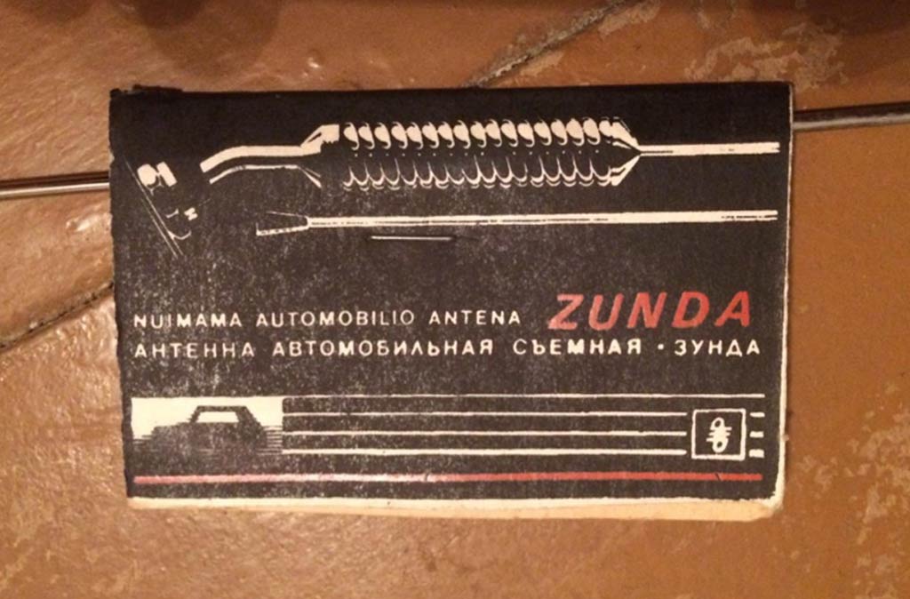 Антенна автомобильная съёмная "Zunda" (Зунда) производилась предположительно с 1991 года Вильнюсским заводом радиоизмерительных приборов имени 60-летия Октября.