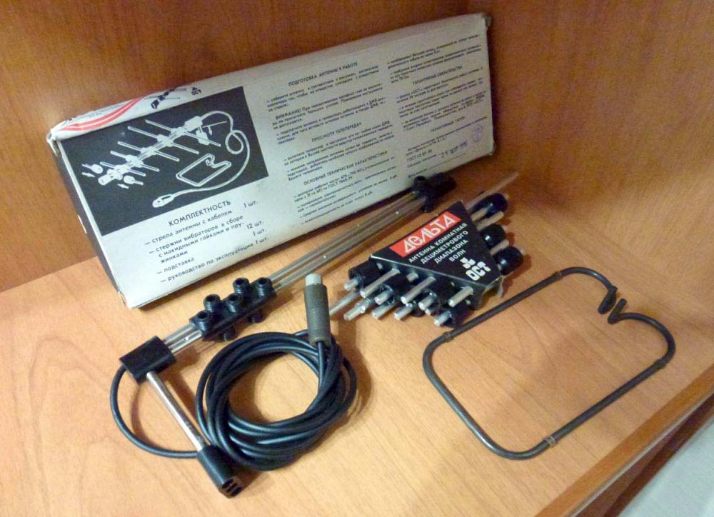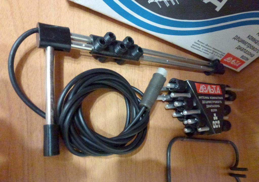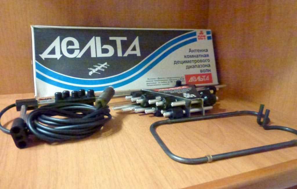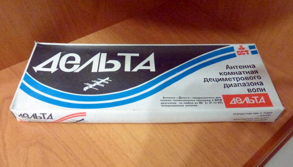 Антенну комнатную телевизионную "Дельта" выпускало возможно с 1992 года Санкт-Петербургское предприятие "ОСТ". Служит для приёма телевизионных сигналов ДМВ диапазона с 21 по 60 частотный канал.
