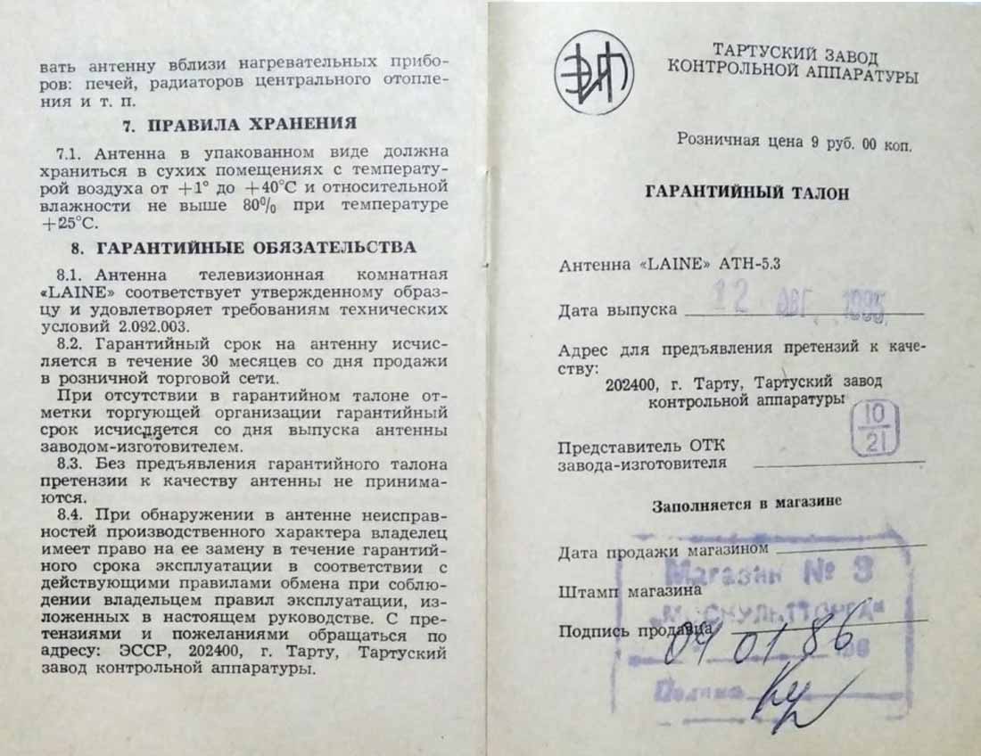 диапазона "АТН-5.3" (Laine) выпускалась с 1985 года Тартуским заводом контрольной