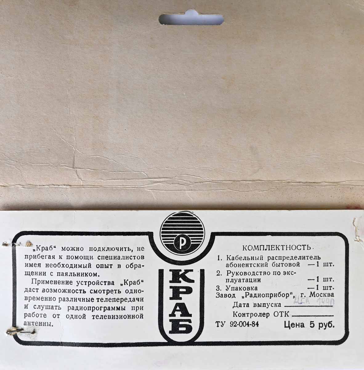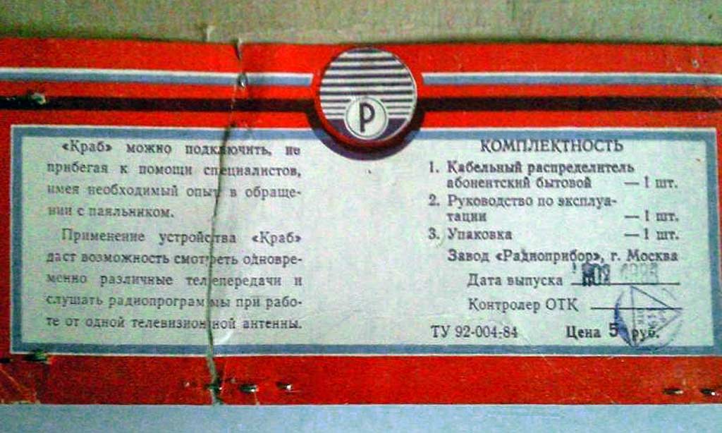 распредилитель абонентский бытовой "КРАБ" выпускался с 1985 года Московским
