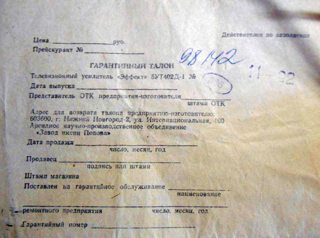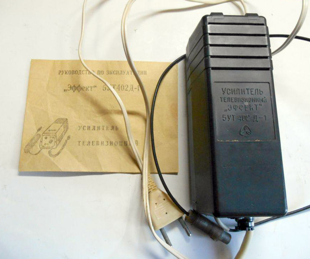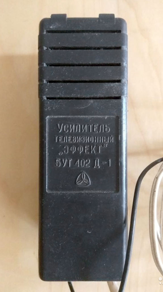 Усилитель телевизионный "Эффект" 5УТ 402 Д-1 предположительно с 1992 года выпускало Арендное НПО "Завод имени Попова", город Нижний Новгород. Усилитель ТВ выпускался в 2-х вариантах оформления.