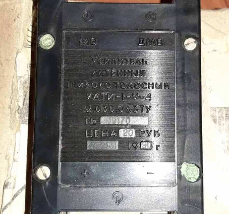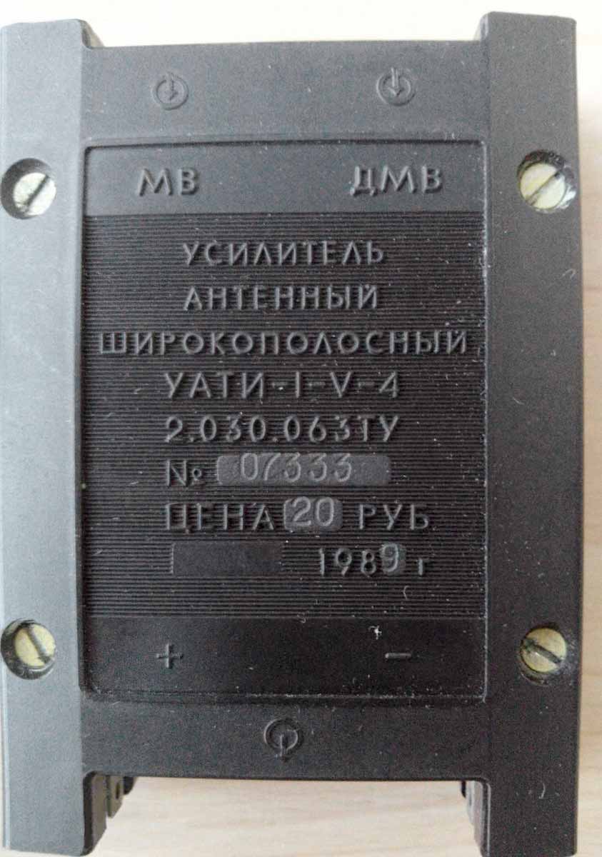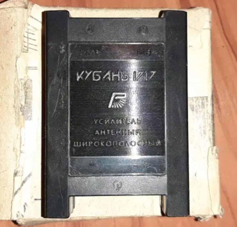 Усилитель антенный широкополосный "Кубань-1717" (УАТИ-I-V-4) выпускался возможно с 1988 года. Усилитель предназначен для усиления слабых сигналов с МВ и ДМВ антенн и их объединения в общий выход.