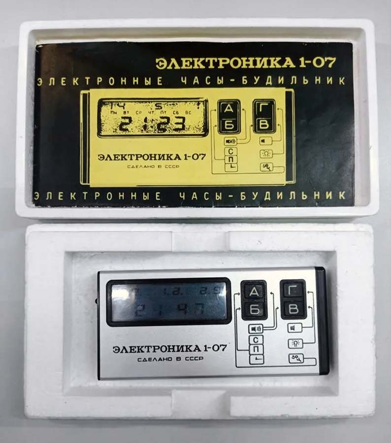 Электронные часы - будильник "Электроника 1-07" выпускались возможно с 1986 года Московским заводом НИИ "Пульсар". Инструкция по эксплуатации часов. Информация о часах из Госреестра.