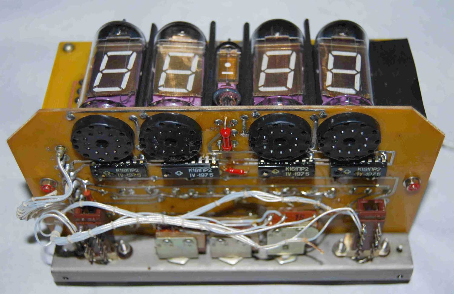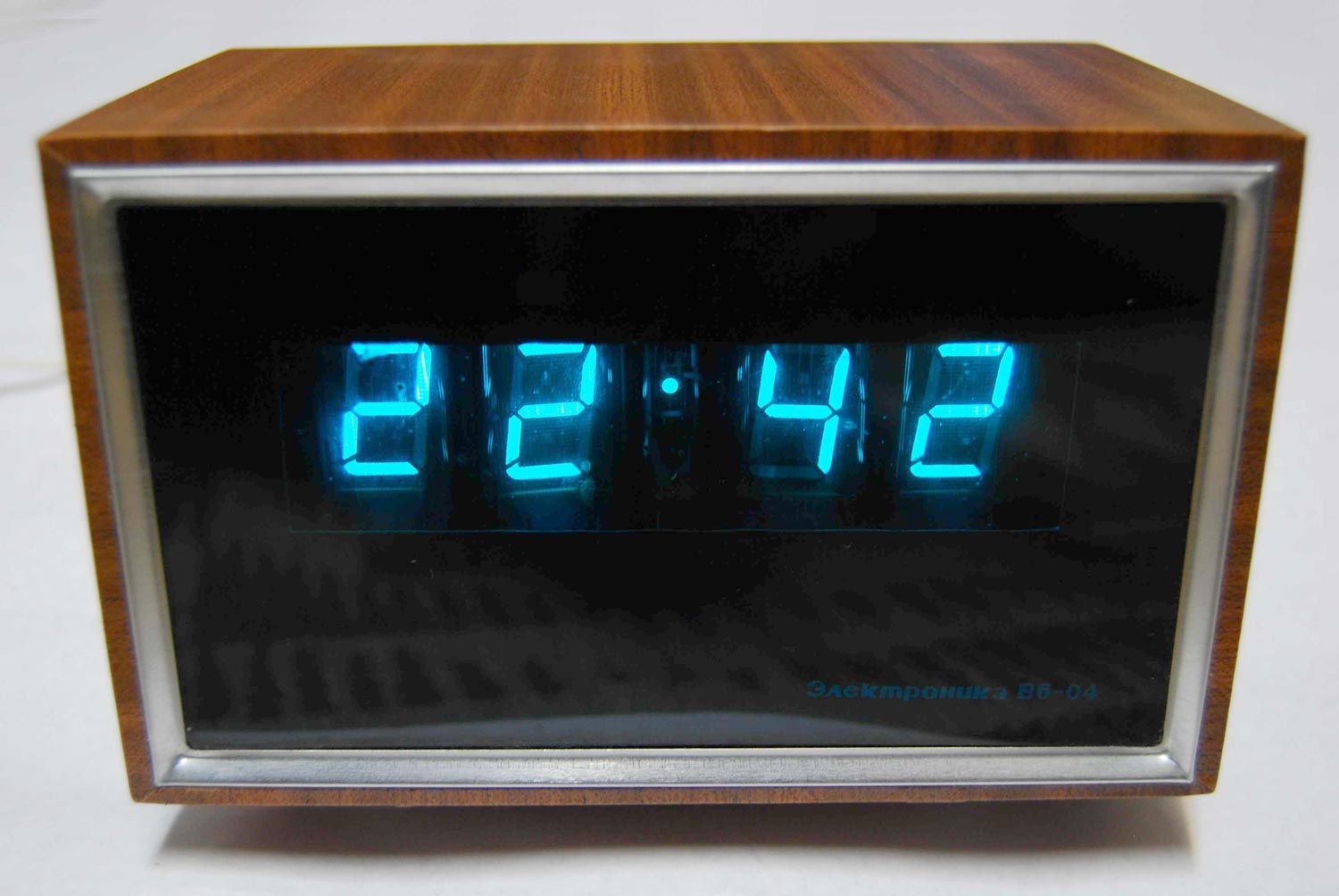 Электронные часы "Электроника В6-04" с 1976 года выпускал Саратовский завод "Рефлектор". Одни из первых электронных часов. Питание - сеть или аккумуляторы (без индикации).