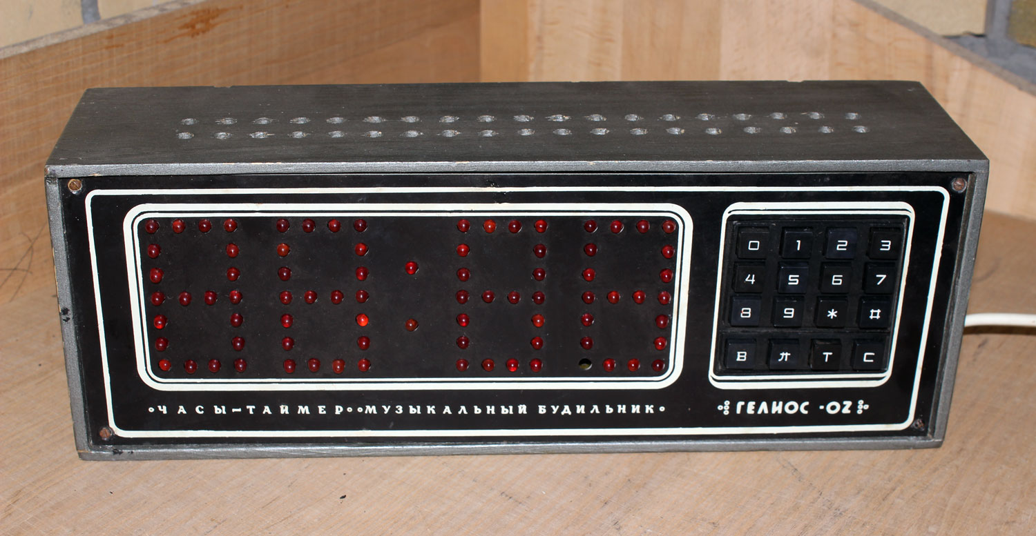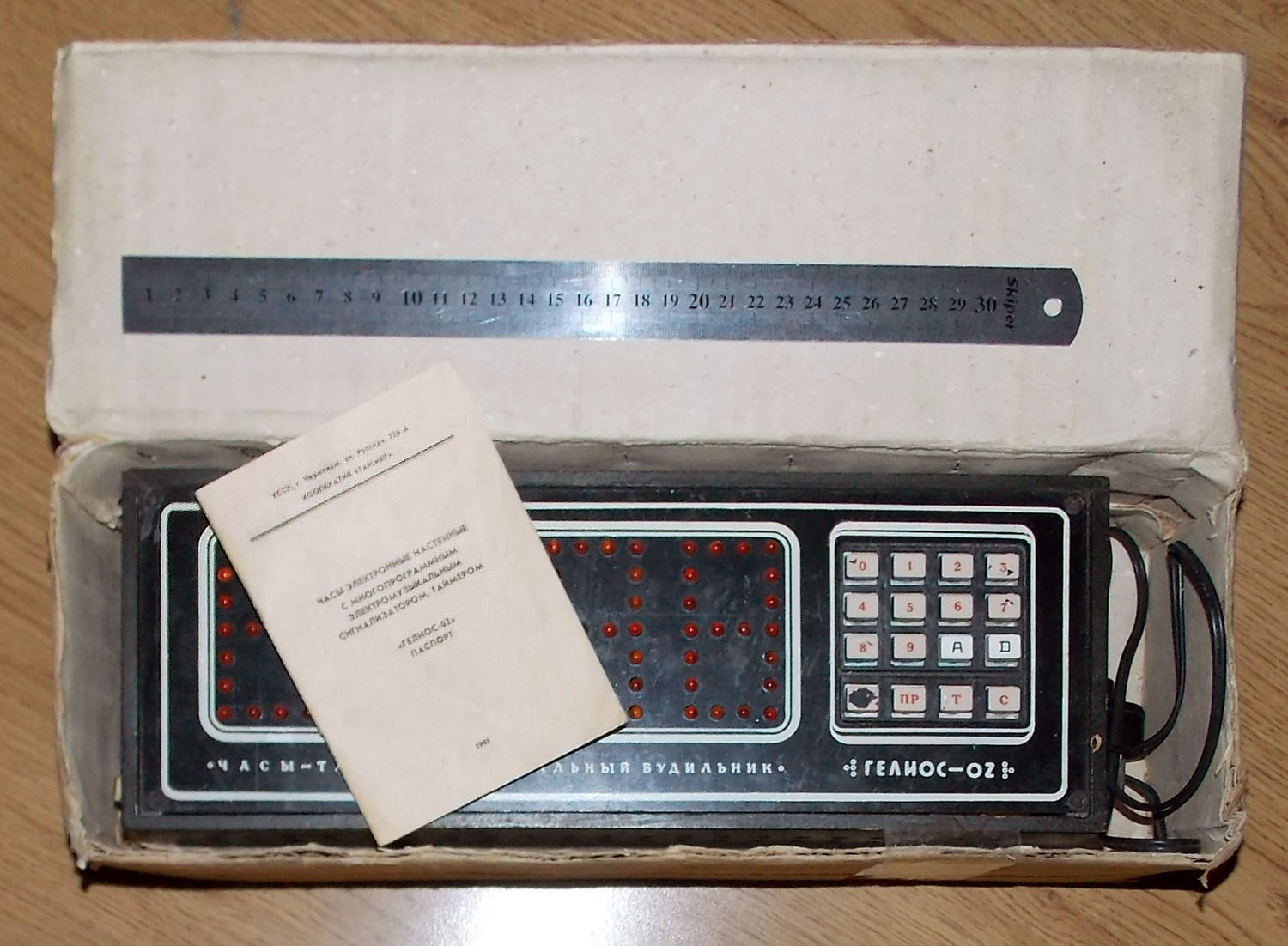 Часы электронные настольные "Гелиос-02" выпускались возможно с осени 1991 года. Предназначены для установки в общественных местах.