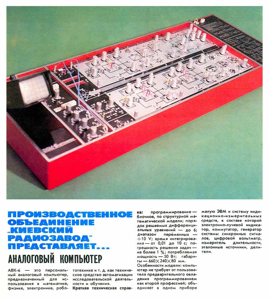 Персональный аналоговый компьютер "АВК-6" возможно с 1987 года выпускал Киевский радиозавод.